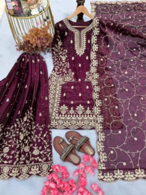 Be the first to review “stitched PREMIUM DESIGNER READYMADE TOP PLAZZO COLLECTIONS Launching New Đěsigner Party Wear Look Pur GMY SILK Top Plazzo & Dupatta Set Code:-AK1141” Cancel reply