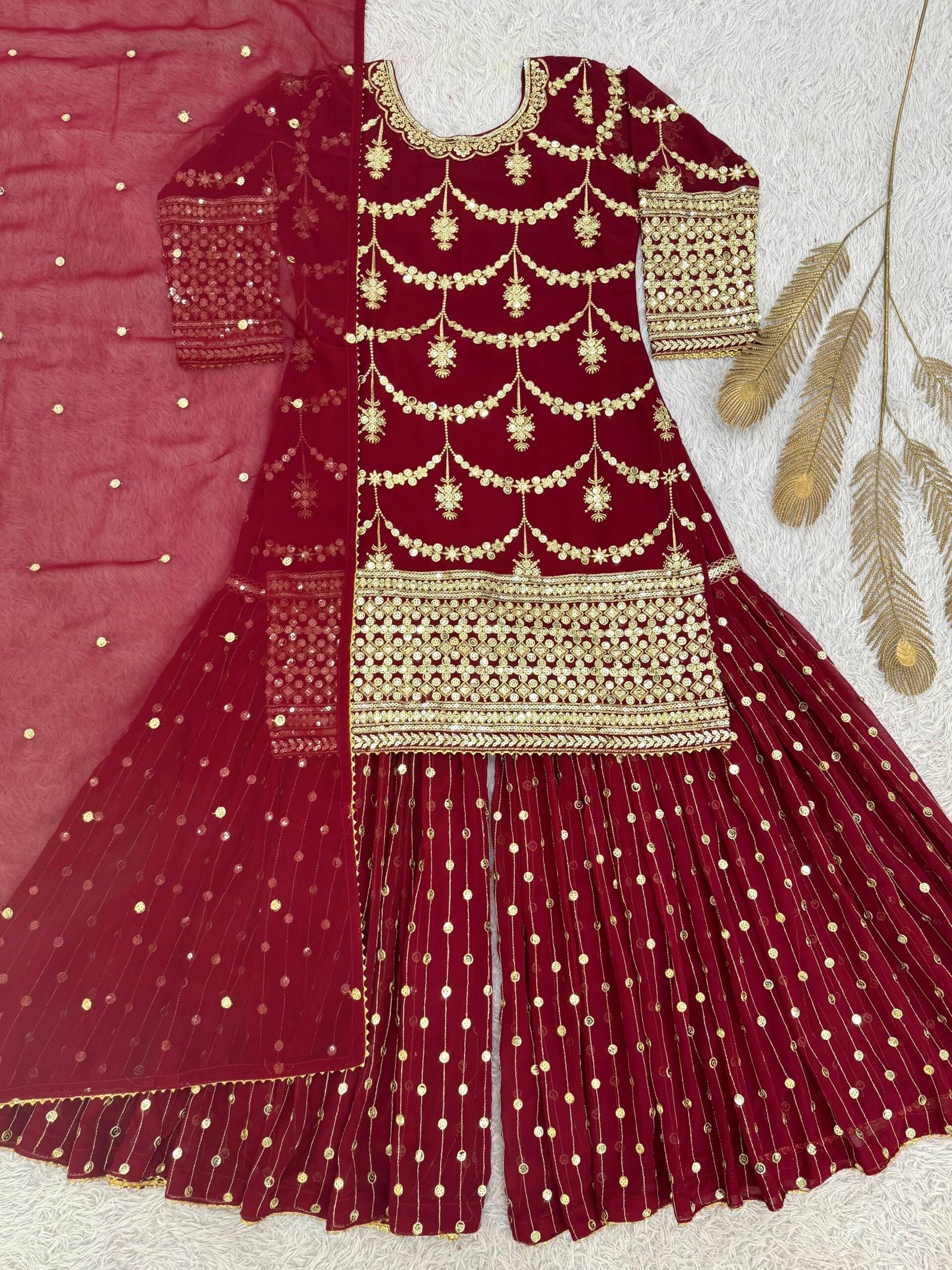 PRESENTING 3 PIECE STYLISH KURTI, SHARARA AND DUPATTA WITH BEAUTIFUL EMBROIDERY SEQUENCE WORK