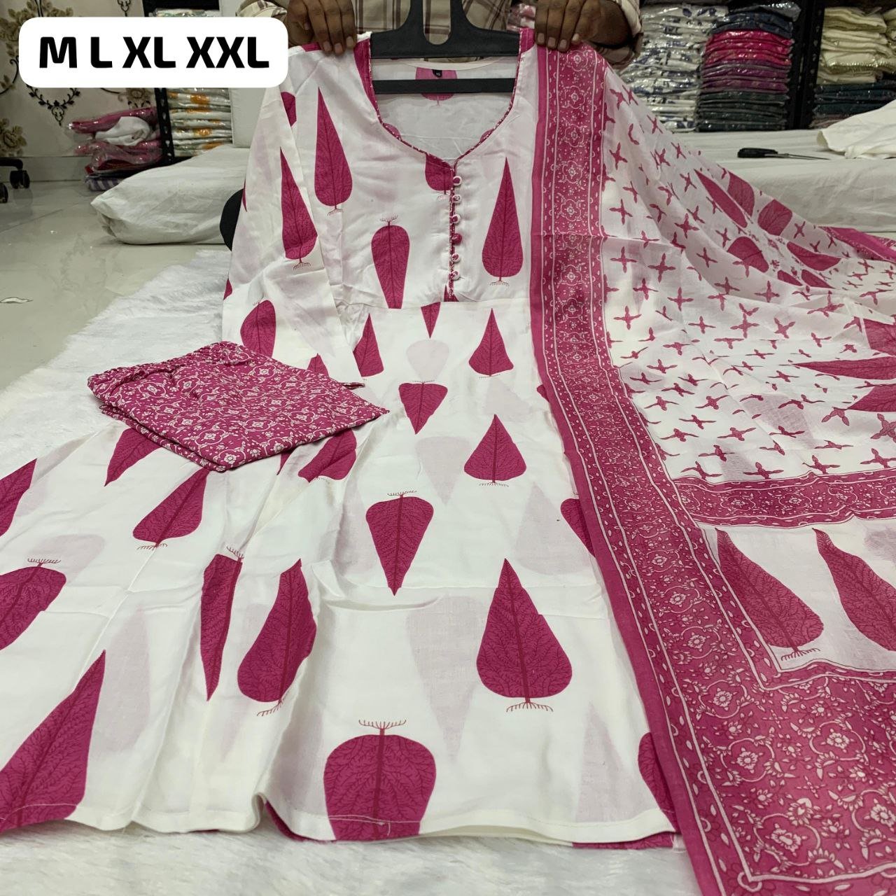 New Tranding Reyon Cotton Suit set in Printed New design kurta Pant with Dupatta