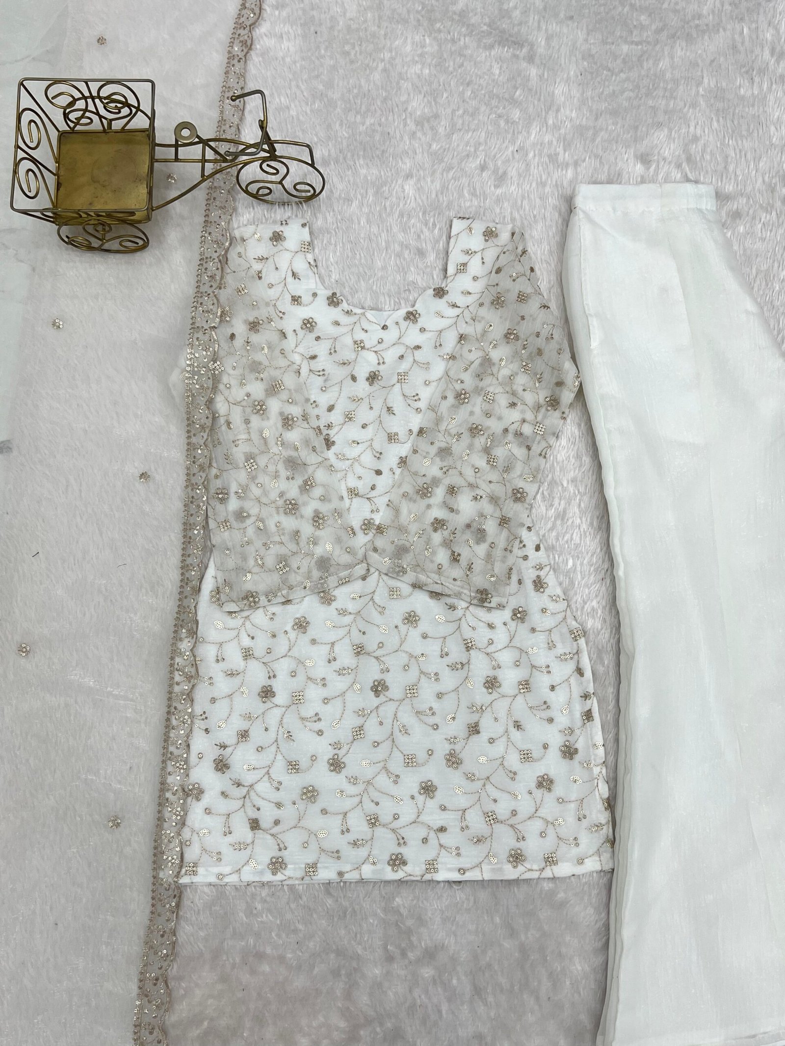 TOPKURTA FABRIC: CRUNCHY SILK FABRIC WITH EMBROIDERY SEQUENCE AND JARI WORK WITH BACK SIDE FANCY DORI PATTERN