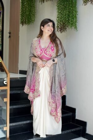 Packing Includes: Dhoti + Blouse + Shrug (3-piece set)