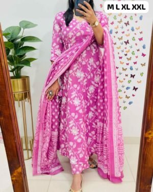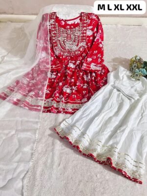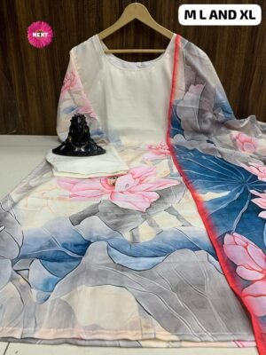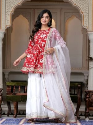 Designer Angrakha style kurti with digital print , Rayon pant with printed dupatta collection.