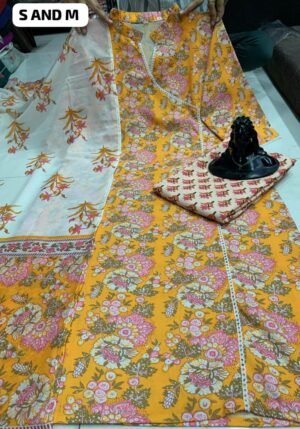 Pure fine Mix fabric Kurti Paired Pant with Dupatta