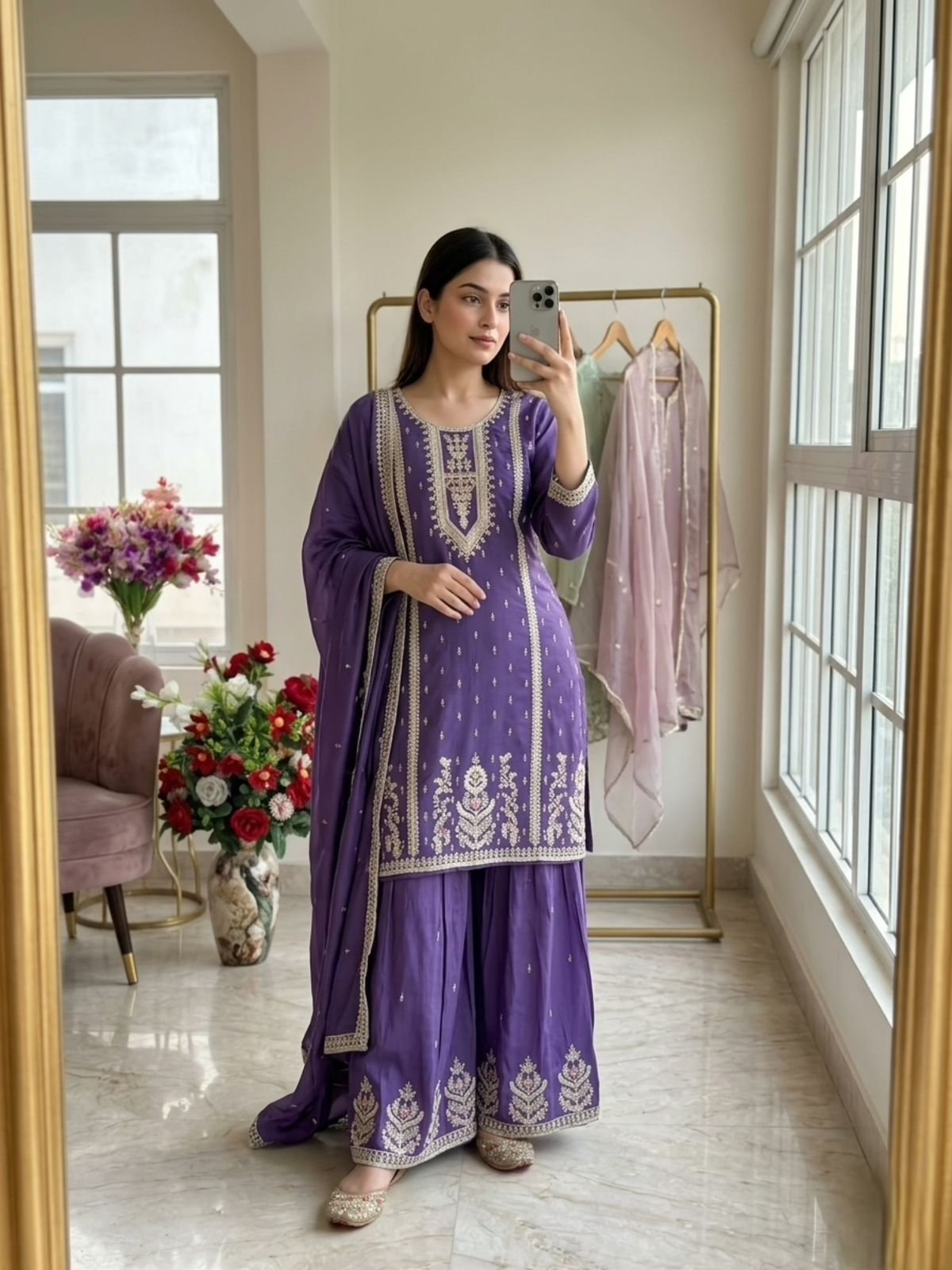stitched Series New Designer Party Plazza,Suit & Dupatta Set FULLY STITCHED WW-G-6011