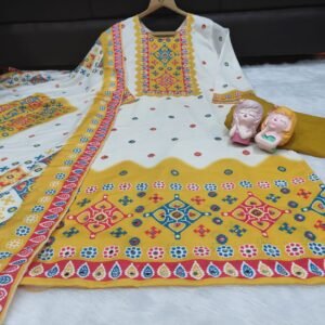 Be the first to review “stitched These stunning ethnic sets are crafted from premium Maslin fabric, known for its buttery-smooth texture, natural sheen, and lightweight comfort. Perfect for festive occasions or elegant daily wear, these outfits blend traditional artistry with a modern silhouette.” Cancel reply