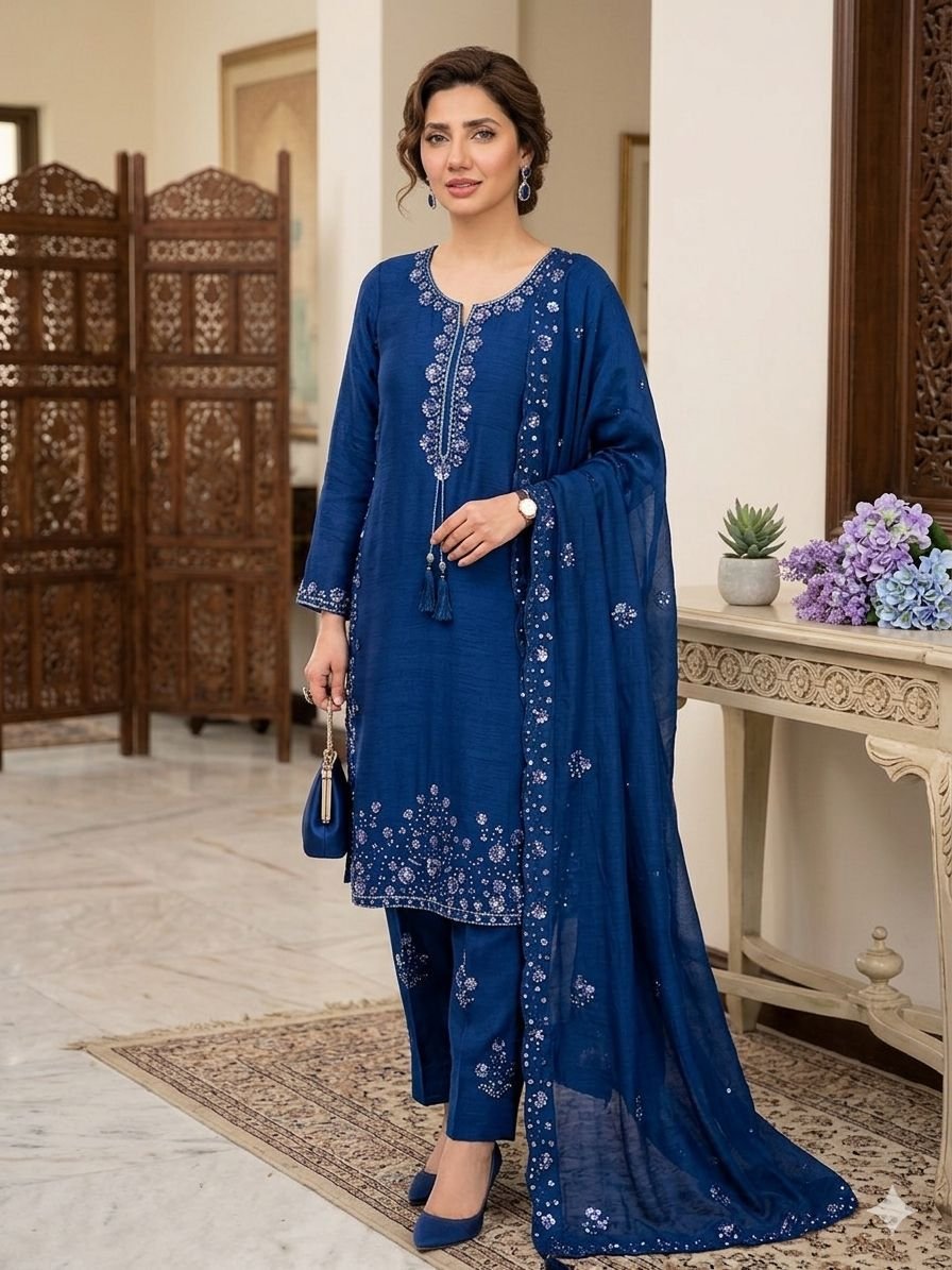 Anamsa 589 Velvet Heavy Embroidered Beautiful Design Sequence An Moti Work Pakistani Suits