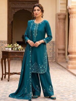 Be the first to review “stitched THIS WEDDING SEASON WEAR OUR THREE PIECE OUTFIT WITH SEQUENCE EMBROIDERED WORKED TOP, FARSI SALWAAR AND DUPATTA _” Cancel reply