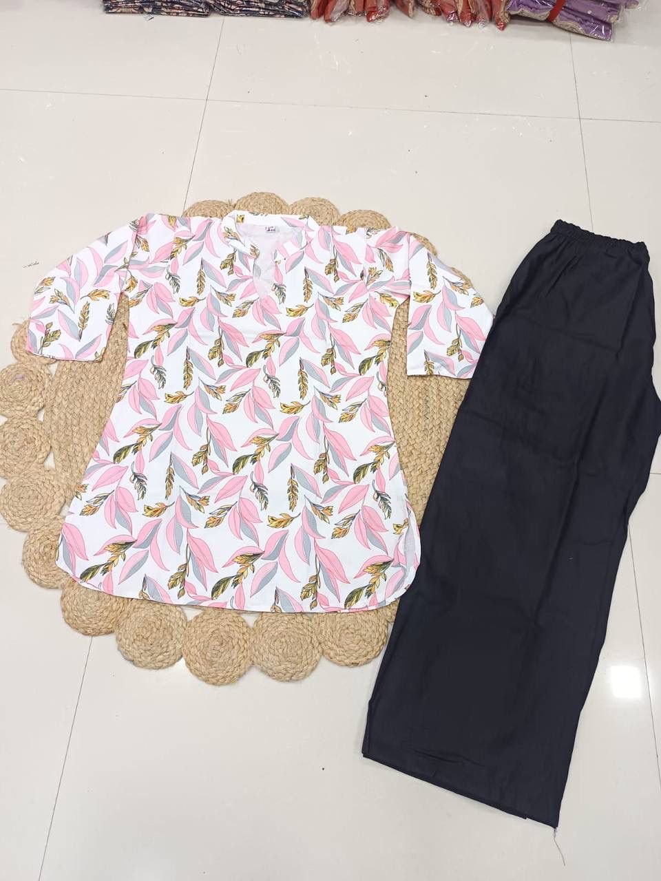 Be the first to review “stitched top pent New Lonching Co-ord set Catlog name – *Zamkudi-2, Pink grey paan-black Plazoo *” Cancel reply