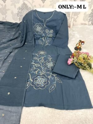 BEAUTIFUL ALLOVER EMBROIDERY WORK ON KURTI & FULLY WORK DUPATTA WITH PANT