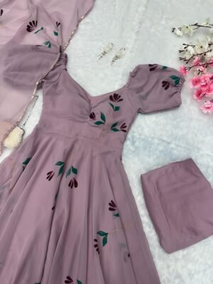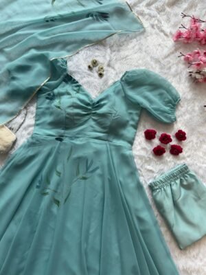 * Anarkali * – Handpainted Georgette Anarkali suit with huge flair, anarkali length 47+