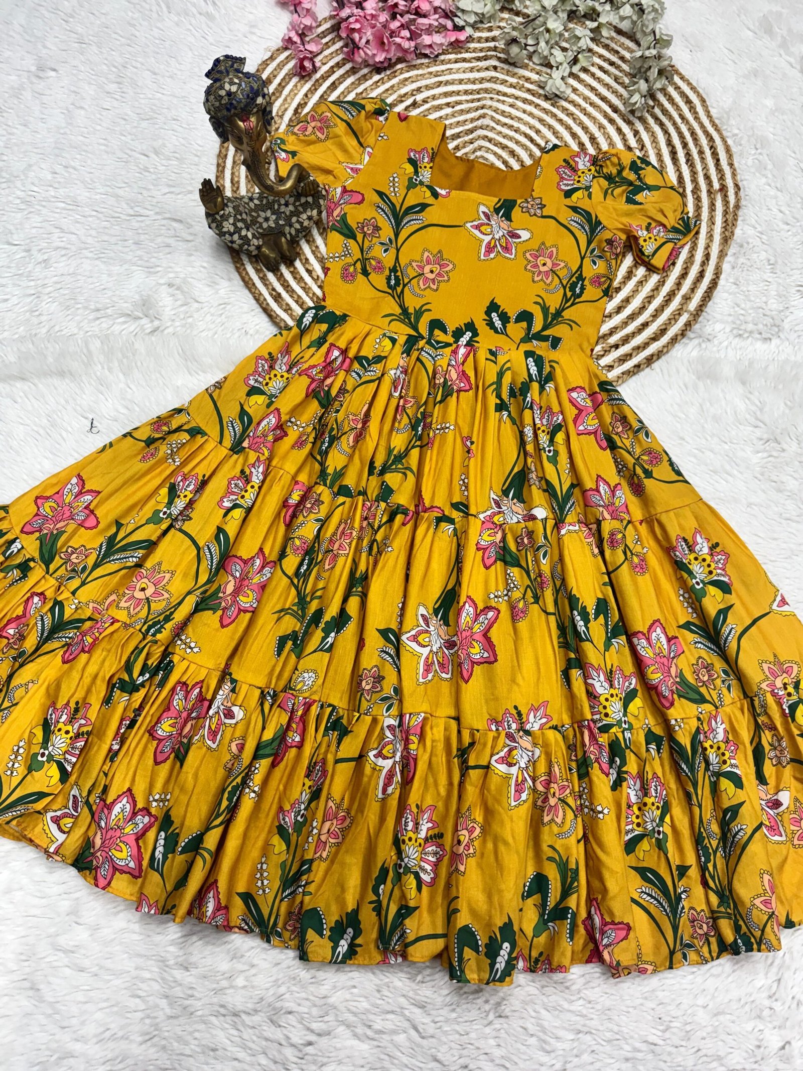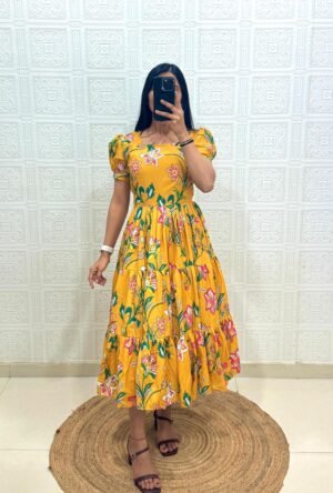 Be the first to review “This Dress made from muslin cotton fabric with Print Work and stylish 3 Layer Pattern” Cancel reply