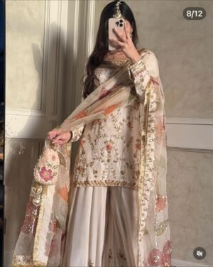 Dupatta Fabric:Pure Tebby Orgenza Silk With Dijital Print With Emrodery 5mm Siqwans Work With Four Side Fency Zaler Less Work