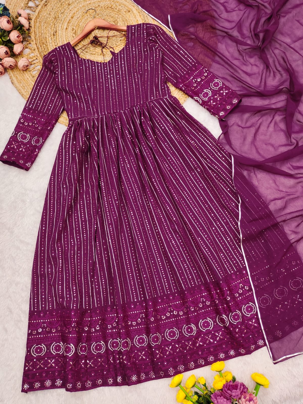 Turn Heads At Weddings And Parties With Our Exquisite Black Georgette Embroidered Suit Set. ✨ This Elegant Ensemble Features Intricate Embroidery, Making You The Star Of The Celebration. Get Ready To Make A Statement! 💃🎉