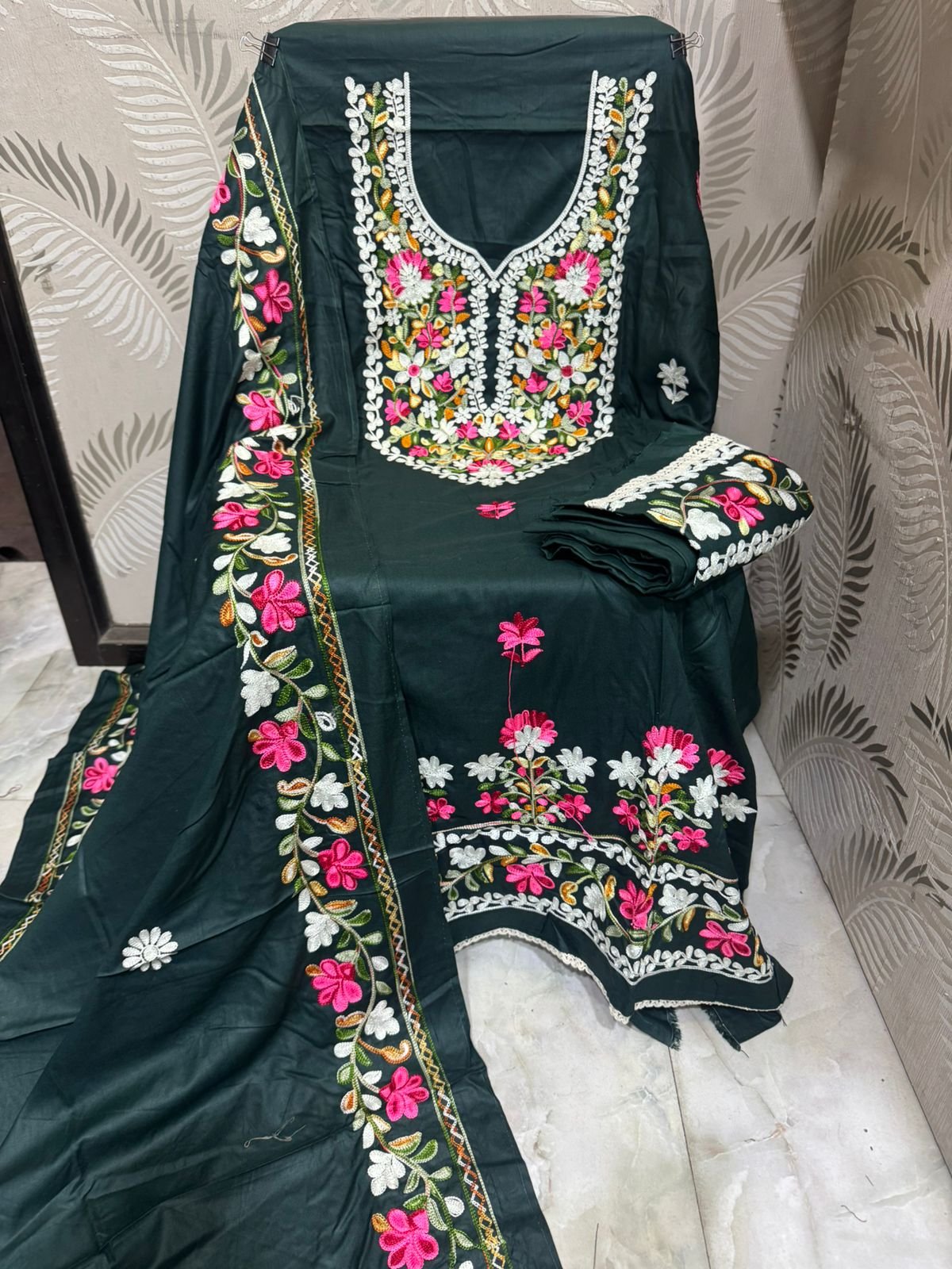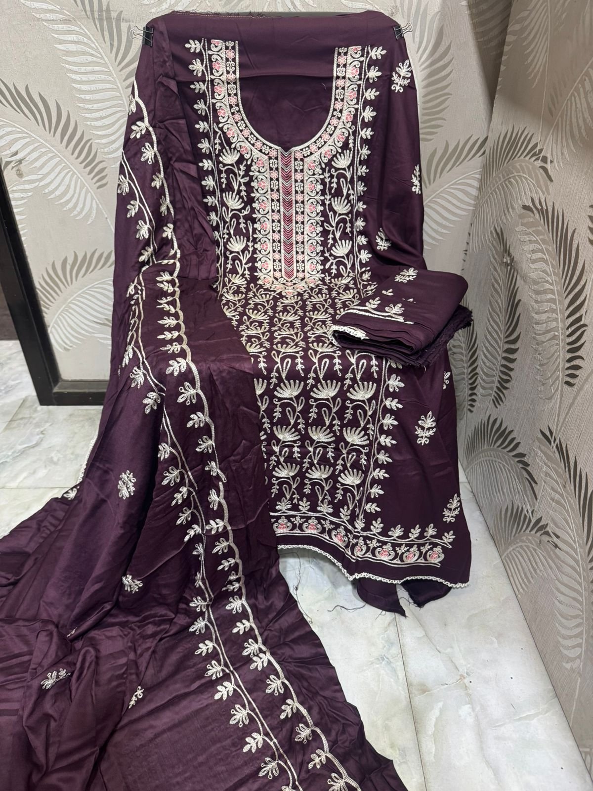 Top: PURE LINEN WITH FULLY KASHMIRI EMBROIDERD WORK
