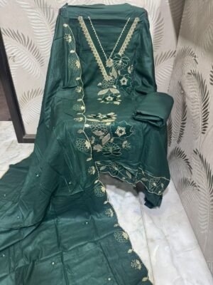PURE VISCOUSE LINEN SOFT EMBROIDERED BOTTOM DYED