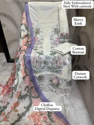 SKU: PURE LAWN COTTON WITH HEAVY EMBROIDERED & DAMAN CUTWORK