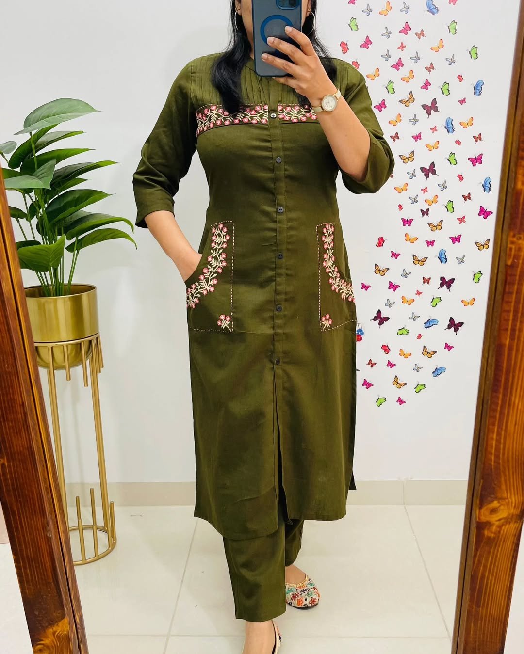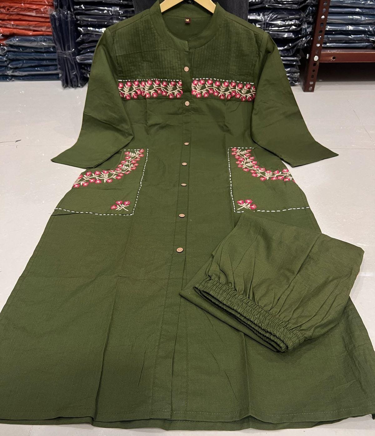 Upgrade your office wear wardrobe with this classy kurti embroidery work detailing with 2side pocket pant for all day comfort and trendy look