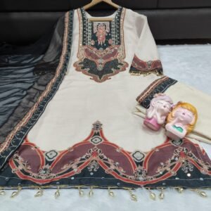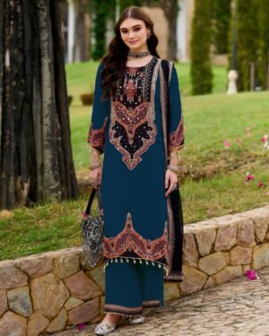 Experience a blend of tradition and modern style with this stunning 3-Piece plazzo kurti duppata Set. Available in two sophisticated shades—Deep Teal Blue and Classic Cream—this outfit is designed to make a statement at festive gatherings or formal events.