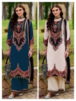 Experience a blend of tradition and modern style with this stunning 3-Piece plazzo kurti duppata Set. Available in two sophisticated shades—Deep Teal Blue and Classic Cream—this outfit is designed to make a statement at festive gatherings or formal events.
